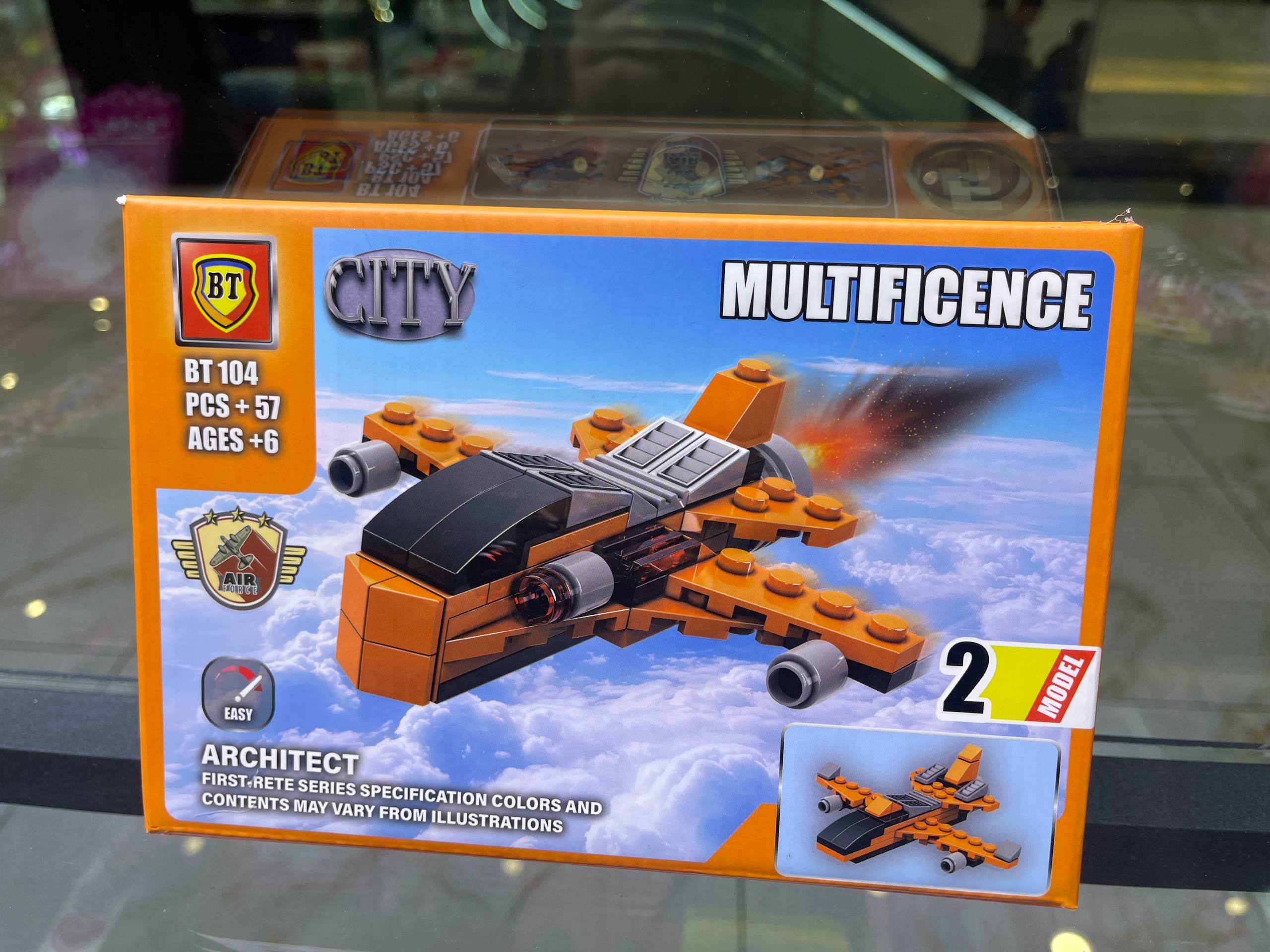 لگوی هواپیمای جنگی مدل BT-104 از سری CITY MULTIFICENCE یک مجموعه ساختنی اکشن با 57 قطعه است که برای کودکان بالای 6 سال طراحی شده. این ست امکان ساخت دو مدل مختلف هواپیمای جنگی را فراهم میکند و با طراحی هوایی، رنگهای جذاب و سطح دشواری آسان، انتخابی عالی برای شروع بازیهای ساختنی است.این محصول علاوه بر سرگرمی، به رشد خلاقیت، تمرکز و هماهنگی ذهن و دست کودکان کمک میکند. طراحی بستهبندی با تصویر هواپیما در آسمان و نماد نیروی هوایی، جذابیت بصری بالایی دارد و بچهها را به دنیای ساخت و ساز و ماجراجویی دعوت میکند.