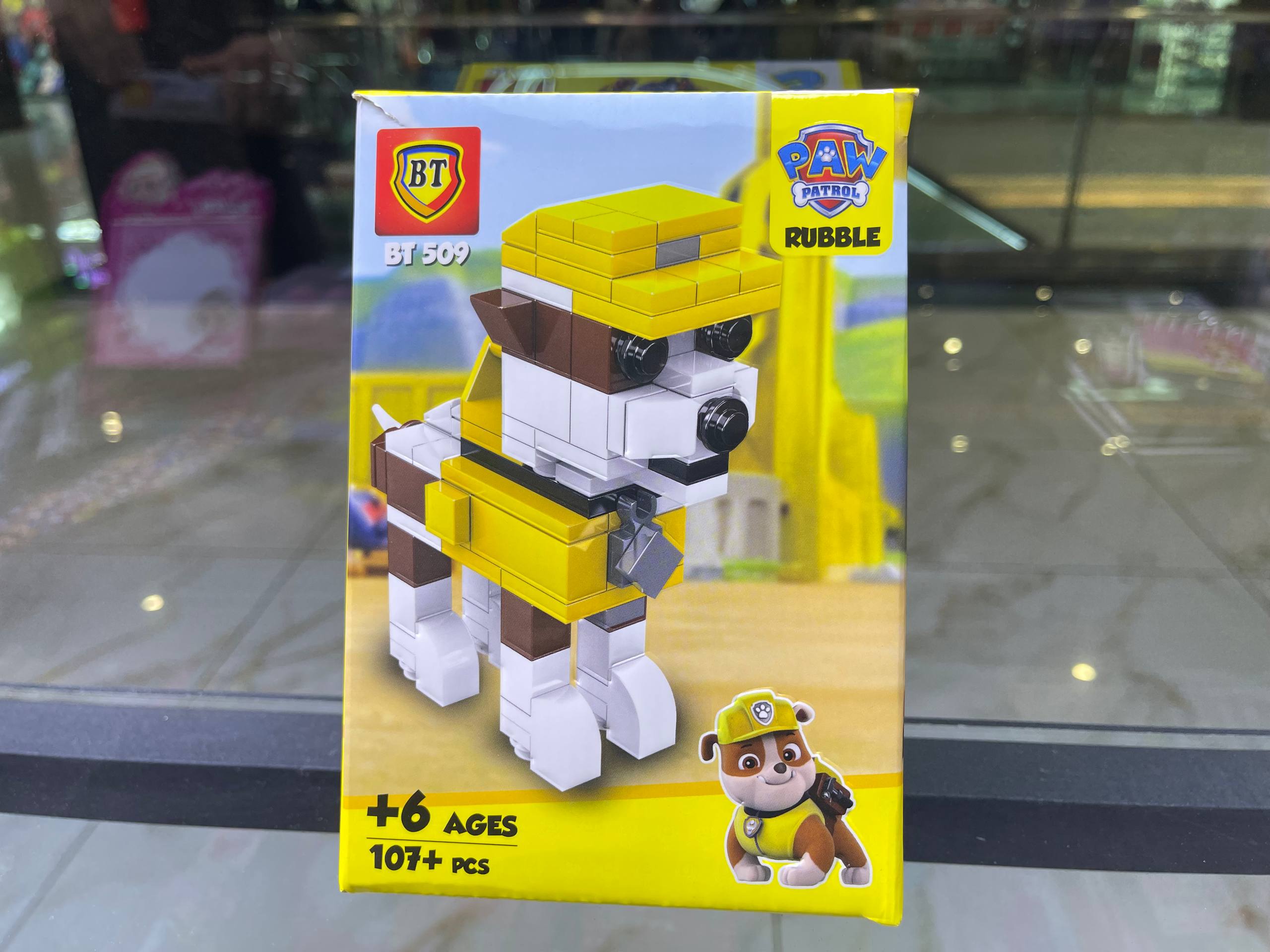 مدل بلوکی شخصیت روبل از PAW Patrol با لباس عمرانی زرد رنگ